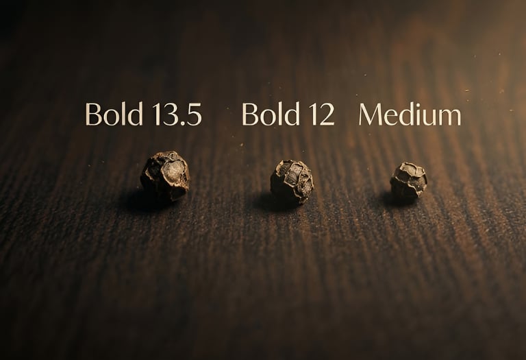 Characterized by bold size and heavy density, our black pepper delivers a sharp, pungent bite. Carefully graded for maturity, these premium berries offer intense heat and a robust aroma that brings any dish to life.